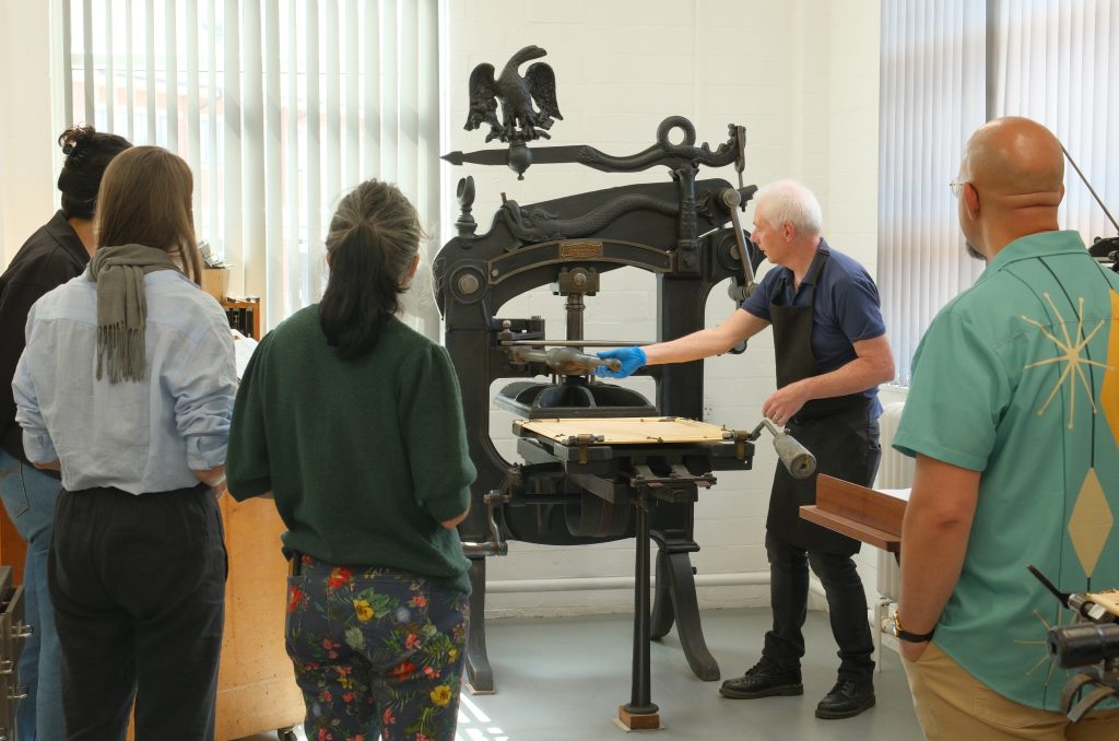 Professor Gerry Leonidas, Dr Borna Izadpanah, Geoff Wyeth (Lecturer and Historic Presses Guru), and Dr Emma Minns, our Archivist, across the weeks. Additionally, Dr Fiona Ross will be contributing in week 1, and Professor Fred Smeijers in week 2.